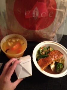 3. Thai. My favorite place to order from is Spice (several locations on upper east side). Thai can be deceptively high in calories due to the sauces. The dish I order seems relatively healthy – grilled salmon in Thai sweet & sour sauce with veggies. There is a little oil, but a lot less than the stir-fry dishes. It comes with a small container of white rice (one cup). I also get a Tom Yum soup with shrimp and veggies. It is spicy and mainly broth … helps to fill you up without the calories.